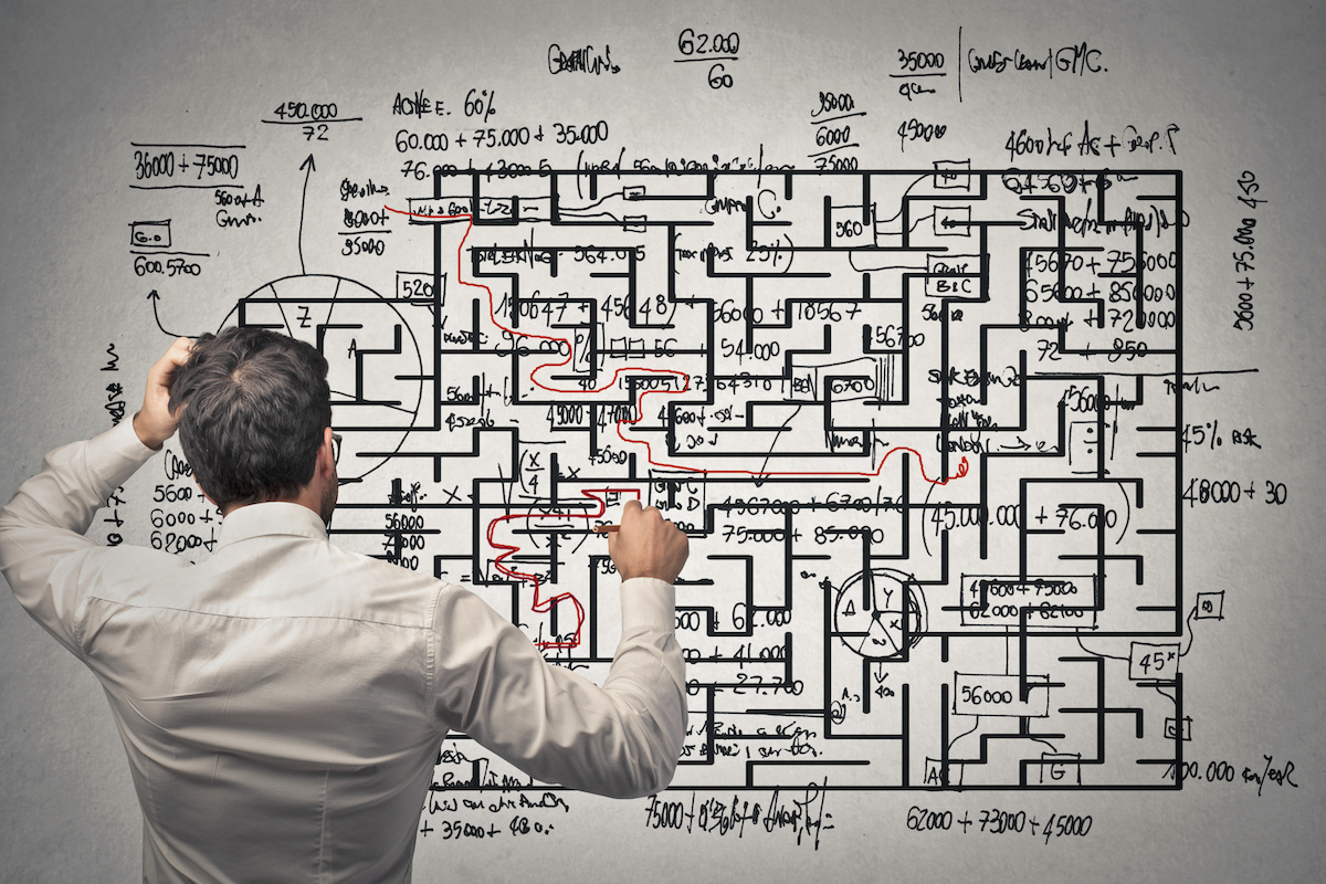 „Business process and workflow concept. Businessman drawing flowcharts on chalkboard.“ © tadamichi – Adobe Stock