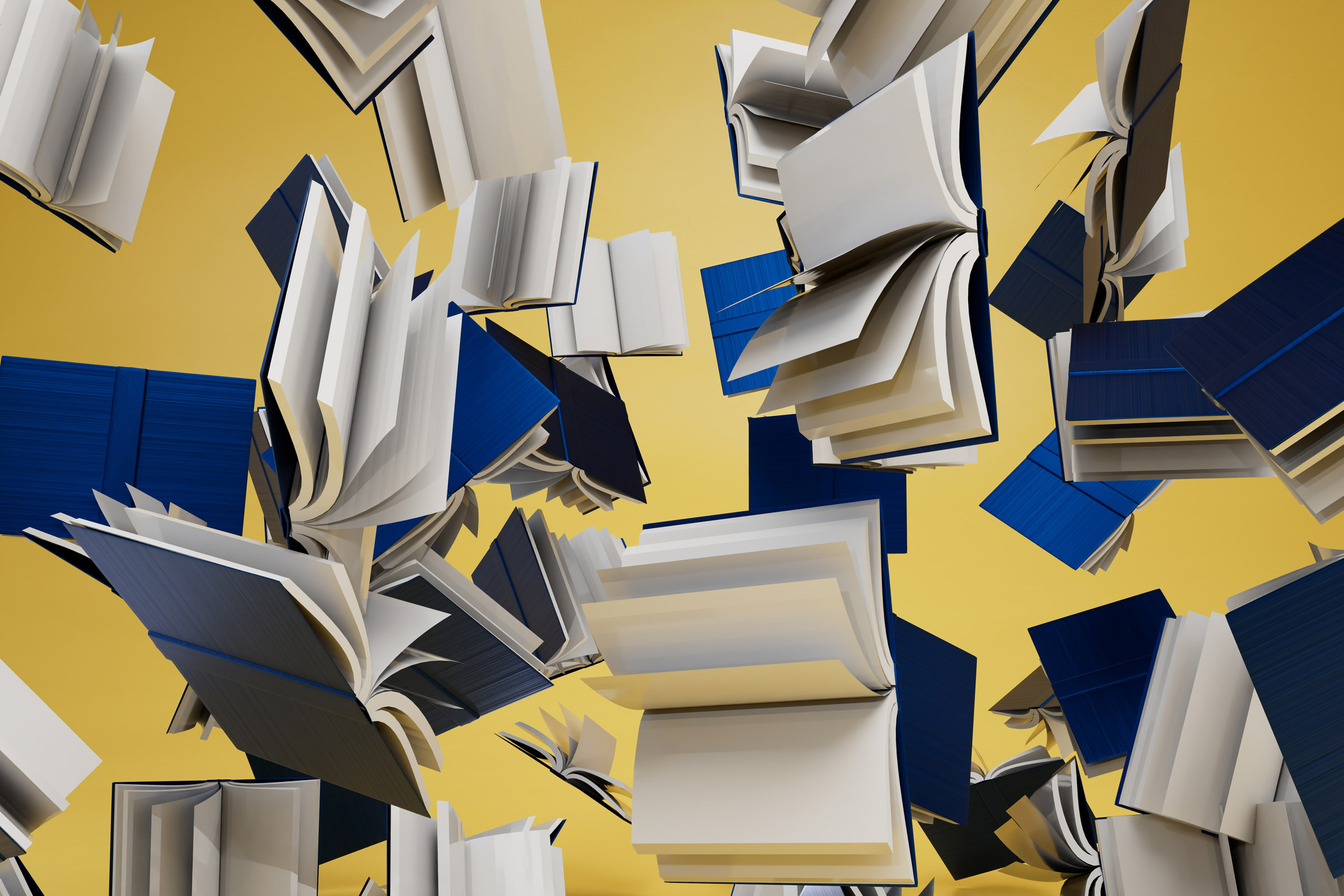 “abstract background. patterns of books in blue covers” © Igor – Adobe Stock