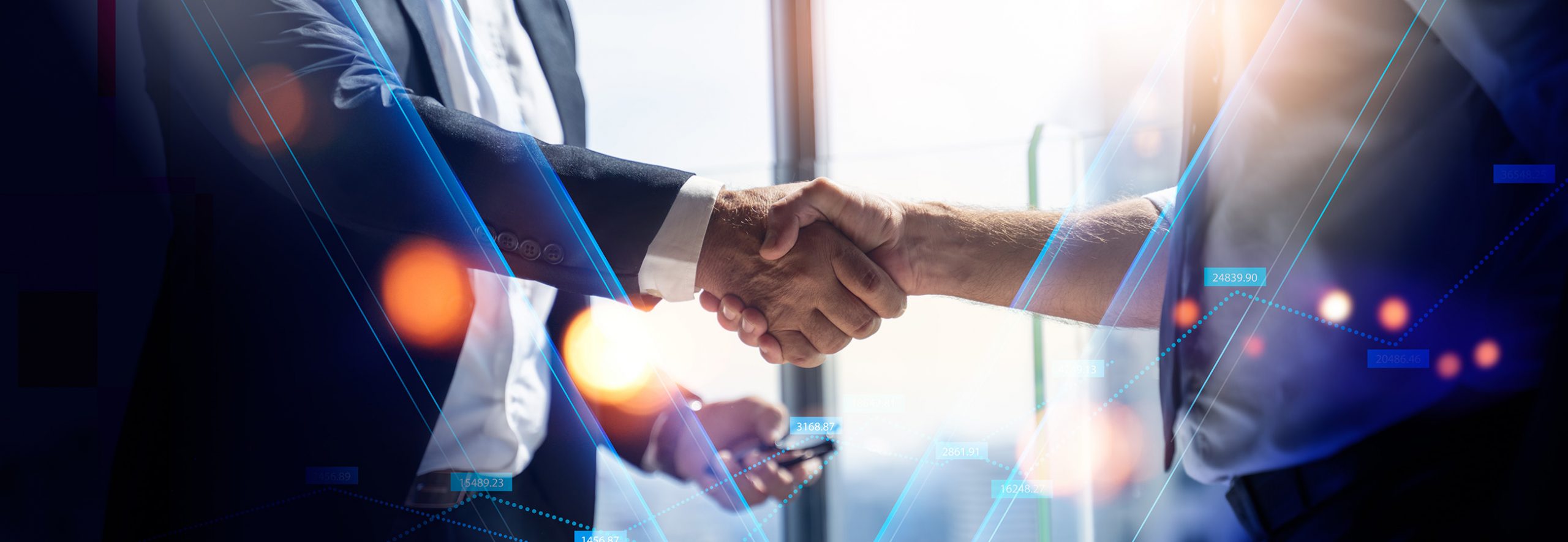 „Digital handshake on blue background“ © peshkova – Adobe Stock