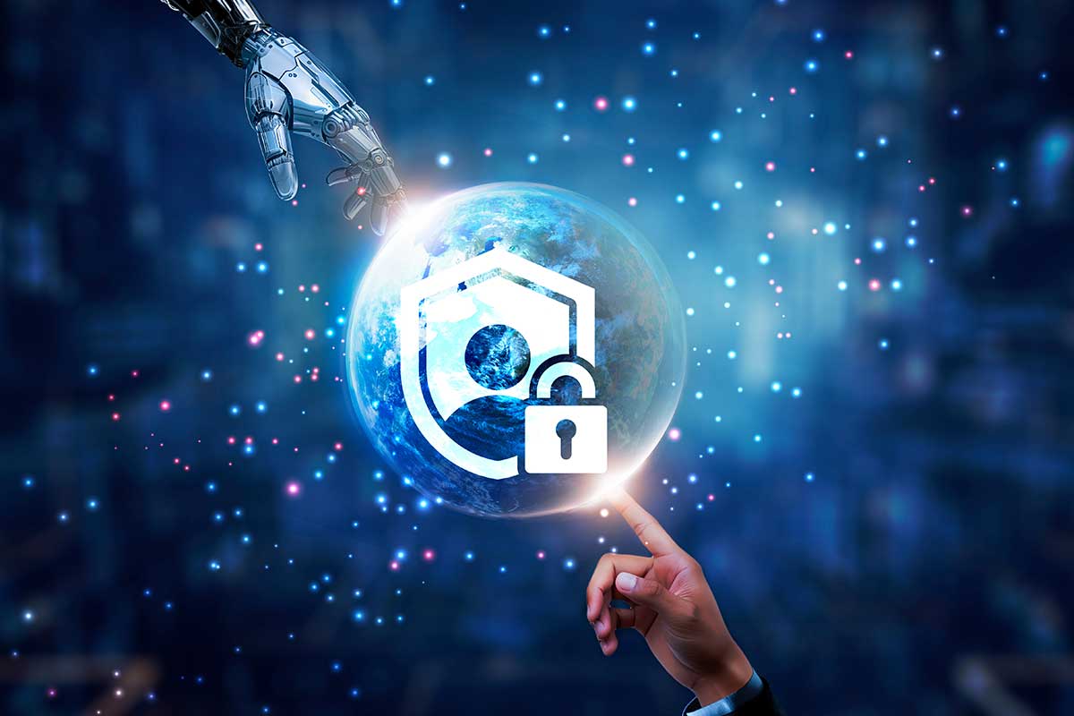 “Hands of robot and human touching on privacy icon” © AD – Adobe Stock